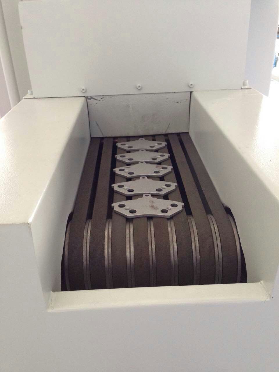 剎車片的生產(chǎn)過程中質(zhì)量尤為關(guān)鍵,其中最重要的一個生產(chǎn)環(huán)節(jié),鐵才與剎車片雛形粘合,粘合前需要通過自動噴砂機,才能有效的粘合。